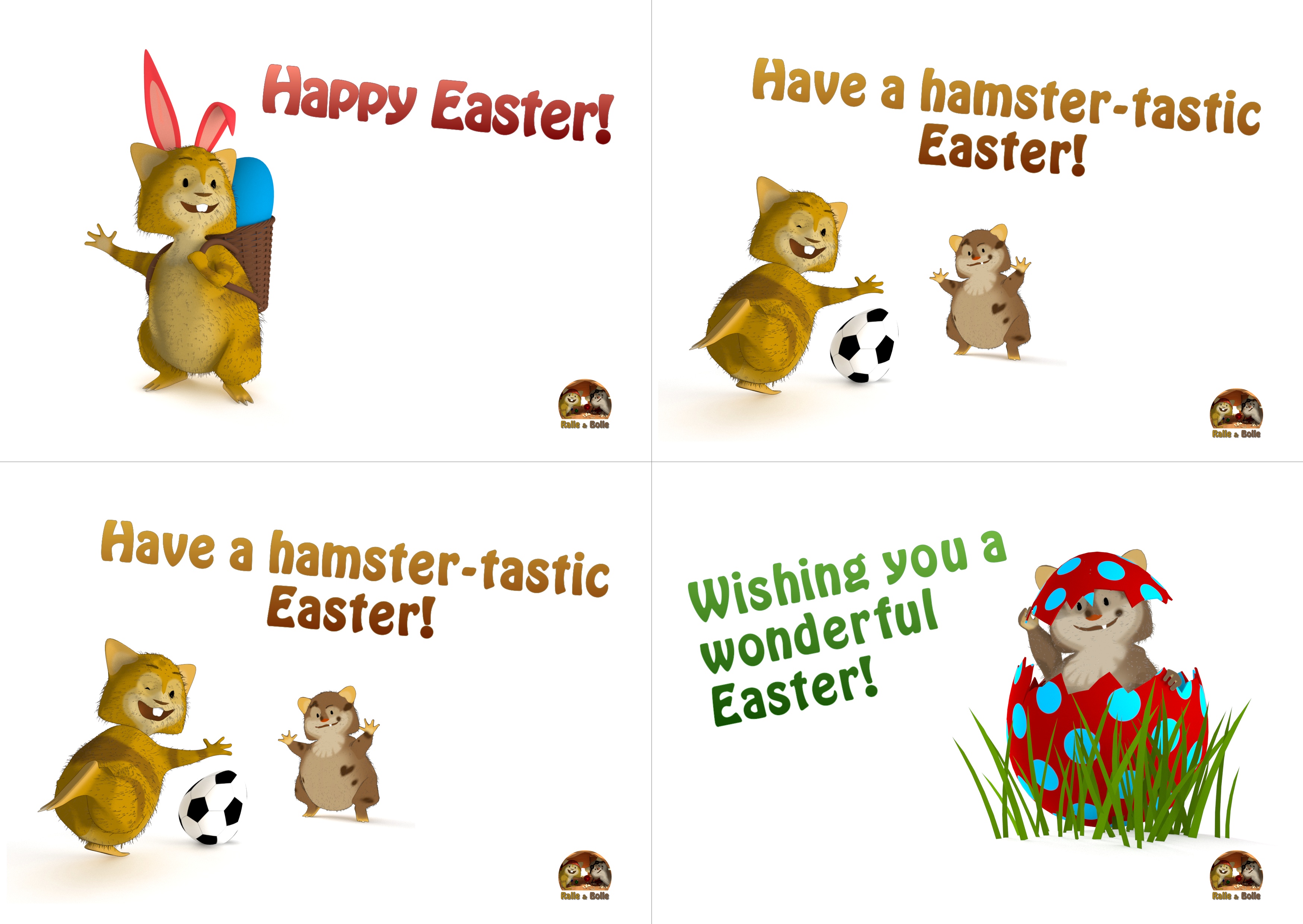 Kids especially love it: Now you can send Easter greetings to your family and friends with Ralle & Bolle. Just download the PDF, load some sturdy paper into your printer, and hit "Print." No need to resize or adjust anything. You’ll get a postcard-sized printout right away - all you have to do is cut it out.